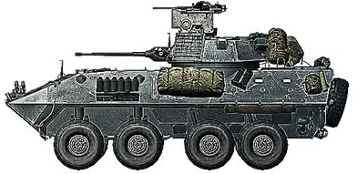 Das LAV-25 (Light Armored Vehicle) ist ein leicht gepanzerter, vierachsiger amphibischer Radpanzer, hergestellt von General Dynamics Systems. In der Wirklichkeit hält es Beschuss mit 14.5 mm Panzerbrechender Munition stand (vermutlich weil die schweren Russischen MGs dieses Kaliber haben). Das LAV-25 ist ein Amphibisches Fahrzeug. Das heißt es kann sich auch im Wasser fortbewegen (und schwimmen). Die Höchstgeschwindigkeit liegt auf Land bei 60 mph (ca 100 km/h), im Wasser bei 12 km/h.