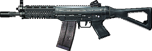 Die SG553 hat ein 30 Schuss Magazin, Auto-, Single und Feuerstossfunktion sowie eine mittlere Reichweite.