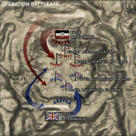 L'opération Battleaxe était une bataille de la Seconde Guerre mondiale qui a eu lieu en Afrique du Nord en 1941 et qui a vu s'opposer les forces de l'armée du Royaume-Uni et de l'Allemagne nazie. Le 15 Juin 1941, les forces britanniques ont attaqué les positions de l'Afrika Korps et les dispersa, tout en résistant à plusieurs contre-attaques. Ailleurs, les chars britanniques ont attaqué sous un feu nourri de l'artillerie allemande. Plus de la moitié de tous les chars britanniques ont été détruits pendant le premier jour. Le deuxième jour, environ les trois quarts de leurs chars avaient été détruit. L'Afrika Korps, contre-attaquèrent alors sur le flanc des britanniques, ce qui les obligea à se retirer le 17 Juin. L'opération a été une défaite cuisante pour l'armée britannique.