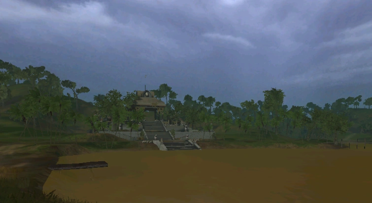 Передовая база – самый близкий флаг к американской Базе. Передовая представляет из себя ровное плато, огражденное по периметру мешками с песком, на котором находятся палатки и доты. Также имеется и другой бункер с оградой из мешков, они находятся несколько ниже основного плато, рядом с ним располагается посадочная площадка для вертолётов. От плато есть дорога, которая приводит непосредственно в Храм.