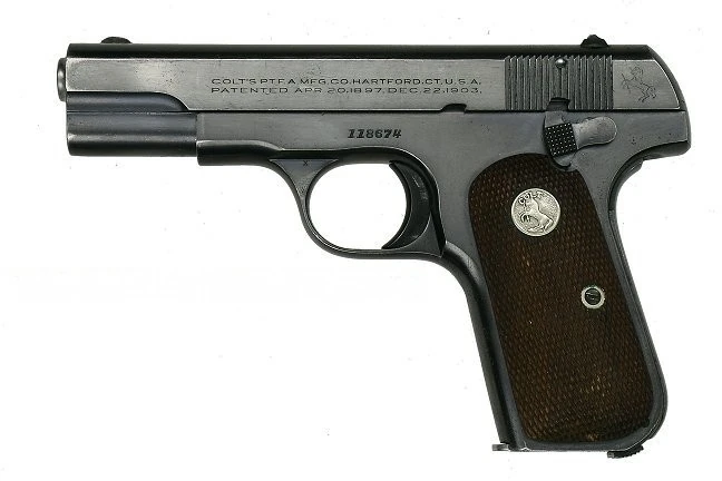 The Colt Model 1903 Pocket Hammerless is a semi-automatic pistol designed by John Browning and built by Colt Patent Firearms Manufacturing Company of Hartford, Connecticut. Despite the title 'Hammerless', the Model 1903 does have a hammer; it is covered and hidden from view under the rear of the slide. This allowed the pistol to be carried in, and withdrawn from, a pocket quickly and smoothly without snagging. Approximately 570,000 pistols were produced from 1903 to 1945, in five different types. Some were issued to US Army and US Air Force general officers from World War II through the 1970s. They were replaced in 1972 with the RIA Colt M15 General Officer's Model, a compact version of the M1911A1.[1]