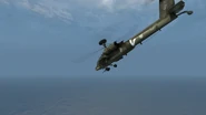 The AH-64 Apache appears both in the campaign and multiplayer as an unusable background vehicle. It has low quality textures and animations.