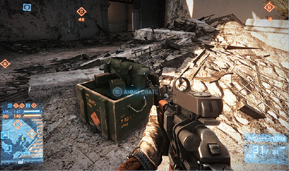 Similarly, to the Medic crate, players may use the Ammo Box as a support for bipods. They also appear on the minimap and as a 3D icon on the screen for all teammates.