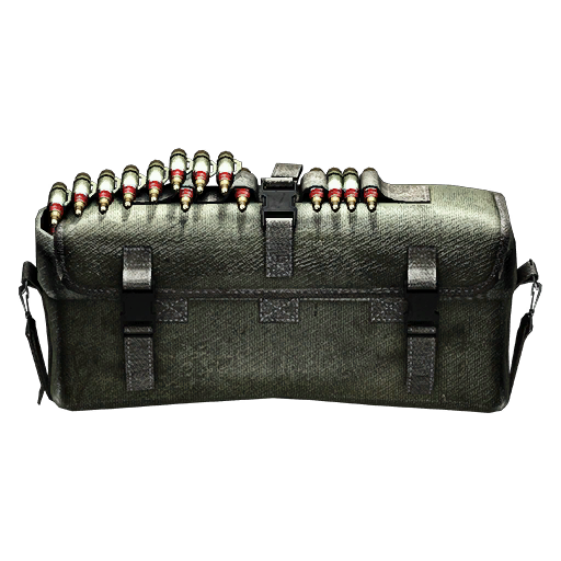 - The ammunition box is labelled to weigh 4.5kg, and contains 7.62mm Ammunition, along with a small box full of shotgun shells that can be seen right next to the belt side of the ammo box.