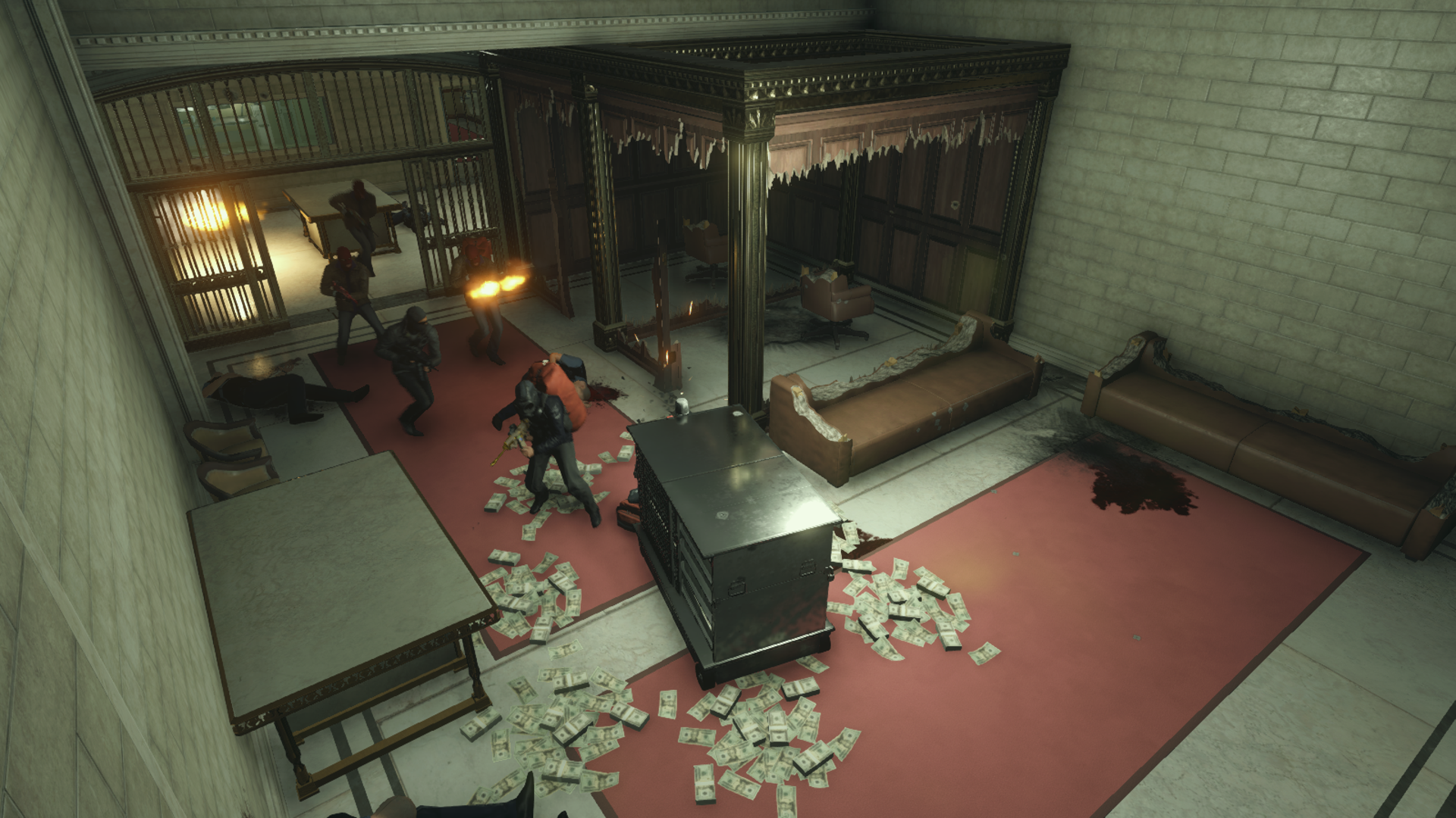 Once the vault has been accessed, the Criminals must now make their getaway from the bank and take both bags of cash to one of two extraction points. These extraction points are chosen randomly between three. Once one of the bags is secure, only one escape point will be available.