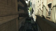 Escape point A is on the roof of the Parking garage across the road to the north of the Bank. This escape route favours a roof break-in, as runners can zipline directly across for an unexpectedly rapid departure. When at the rendezvous point, the elevated position obscures it from those racing up from the SWAT spawn, but the lack of cover around the extraction zone can imperil those waiting with the bag. Additionally, a police defence of this objective puts the Criminals at a disadvantage, as they are forced through stairway and elevator bottlenecks when fighting their way to the top floor.
