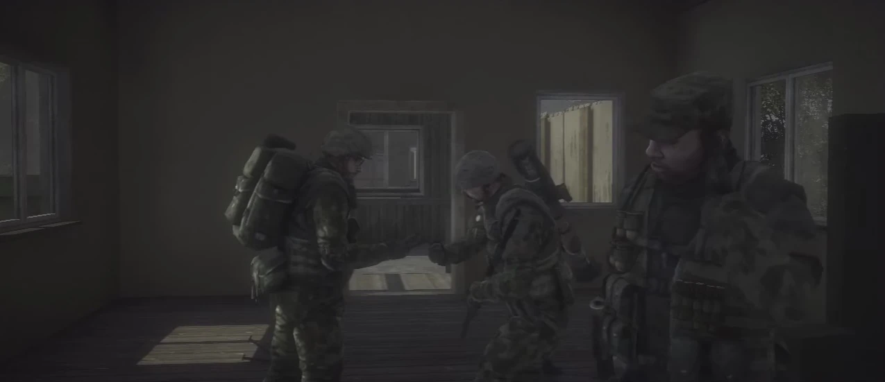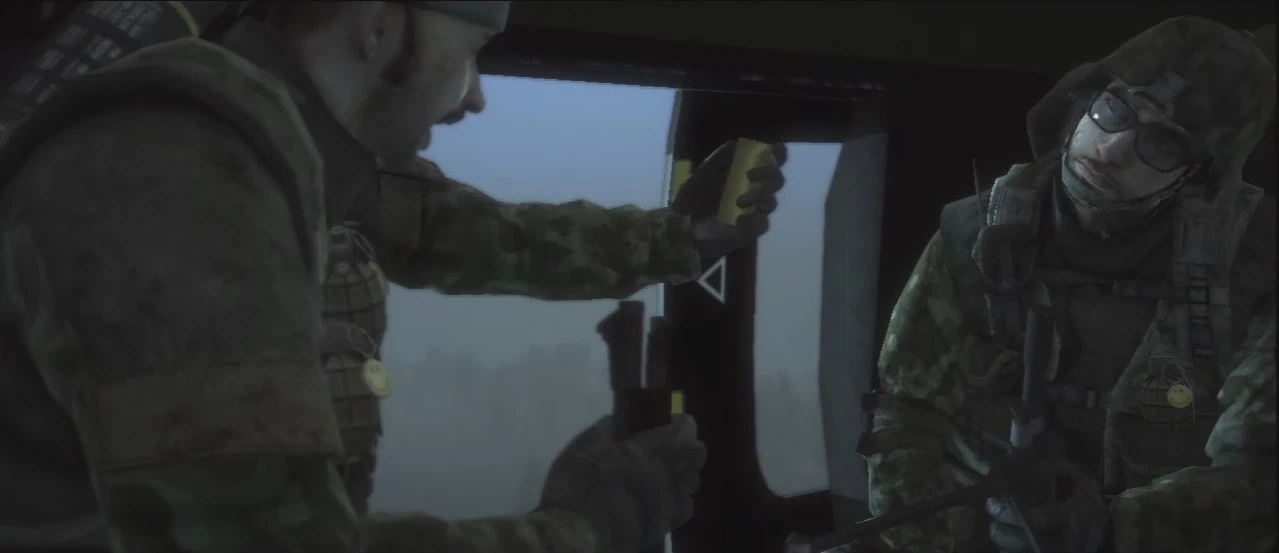 The squad successfully manages to clear out the defenses of the checkpoint, including several KORD emplacements and a T-90 tank. Catching up to Haggard, Redford tells him to give him one good reason to not send him to jail for this, to which Haggard replies that the Sergeant won't because "[Redford] loves him, platonically of course." Mike-One-Juliet, noticing that the squad is not only in neutral territory but have also engaged the forces on the border, contacts the squad and demands an explanation. Redford offers the excuse that they were reacting to a threat, but Juliet does not buy it, stating that the squad is now facing court martial and have lost any chance of getting out of B-Company. With his fishing plans ruined and now potentially facing jail time, Redford decides that he'll be going after the gold. Haggard and Marlowe excitedly join him, as does Sweetwater after some coaxing, leaving the entirety of Bravo-One-Charlie now AWOL from the Army.