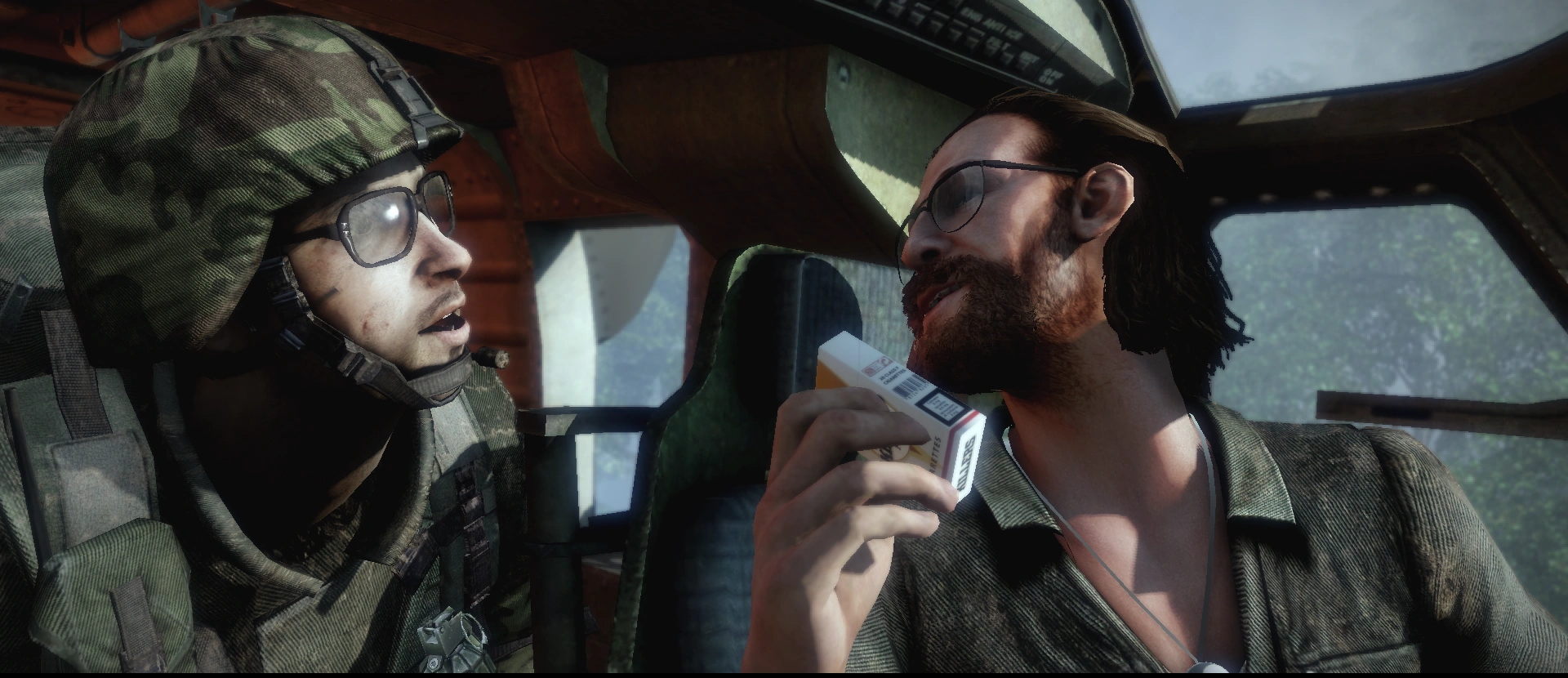 Braidwood gives the squad a USB stick with the collected intel from Chukotka and dispatches the squad to a village along the Bení River in Bolivia, Aguire's last known location. Bravo Two is also assigned their own personal SAD pilot, Flynn, to assist them during their mission. Flynn is an easy-going hippie and an expert UH-60 pilot. After coming under RPG fire from Latin American Militia units en route to the LZ, Flynn manages to dodge the missile with little effort despite being preoccupied with finding his lost cigarettes, commenting that he'd only have issue avoiding something like a Javelin missile. Both terrified and relieved by Flynn's skillset and nonchalant demeanor, Redford tells Flynn to just get the squad to the landing zone in one piece.