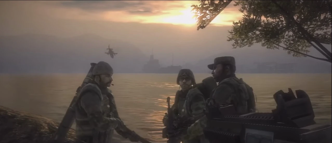 Their joyous moment is short lived, however, as The Legionnaire's Ka-52 arrives once again and attacks the squad. Seeing a VADS anti-aircraft gun set up at the end of the pier, the squad fight through more mercenaries to get to the gun. The Legionnaire bombs the gun as they arrive, though, and prepares to finish off the squad. Left with no other option, Marlowe finds a nearby M2 Carl Gustav and takes out the Ka-52 with the recoilless rifle instead. Having taken out The Legionnaire, the squad fully accepts Marlowe into the squad, with Sweetwater commenting that he's "finally starting to pull his weight in this squad!"