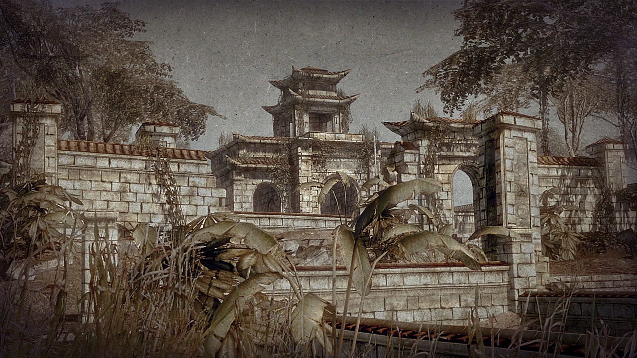 Flag C is the one closest to the NVA spawn. It is a temple, with an exterior wall that has multiple entrances and some holes in it, allowing players to enter or exit the grounds. In the center of the Temple Grounds is another building. This building has a cross-shaped corridor, from which the players can enter into one of four rooms with a large window, allowing them to shoot out. It provides poor cover when surrounded, although it allows a temporary break to resupply and heal.