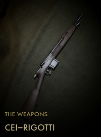 The Cei-Rigotti is a Codex Entry featured in Battlefield 1. It is unlocked upon obtaining ten kills with the Cei-Rigotti.