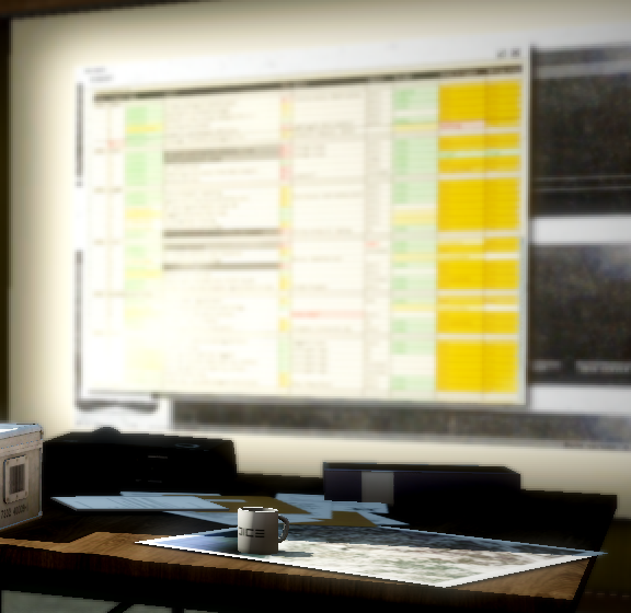 - A DICE mug on Braidwood's desk, visible when he answers his cellphone.