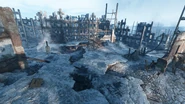 Apartments encompasses the ground between Cinema and Cathedral, and includes Cathedral Street, Courtyard and the ruined buildings betwixt. Of note is the Connector, a path carved through the Apartment block to the north side of Cinema, with a wooden gangplack needing to be built to traverse the gap. The Apartment buildings consist of ruined hallway with adjoining rooms. Some have been completely destroyed by the bombing, leaving only an open doorway and a rubble ramp down to street level. Others, such as the one overlooking Cinema, have only a partial number of walls or gaps in the floor. The rest are either mostly intact or inaccessible.