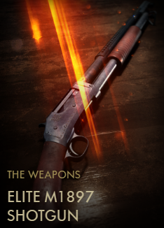 The Elite M1897 Shotgun is a Codex Entry featured in Battlefield 1. It was introduced on February 14th, 2017 in the Winter Update alongside eight other Elite Codex Entries. It is unlocked upon obtaining 500 kills with the M97 Trench Gun.