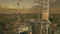 At the Fracking Site, three hydrofracturing towers stand adjacent to three white cabins that contain controls for each neighbouring tower. A control panel allows players to begin the drilling process of each tower, at the end of which, green gas is seen ventilating from the bases of the tower. Igniting these vapours with gunfire or explosives will cause them to combust, collapsing the tower in an explosion. The debris from the destroyed structures form obstacles in the clearing surrounding the Fracking Site.