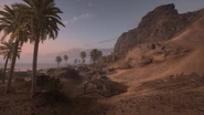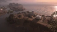 Marsh Village is located on the mainland across the inlet a short distance northwest from Sunwada Redoubt. Aside from the houses north of Turtle Hill, the village is the only civilian settlement on the map. It is comprised of three structures set about a clearing - a large, two storey building is located on the southwest side and smaller, single room dwellings are found to the north and east. An additional ruined structure sits outside the capture zone near the northeastern shoreline, with the marshes that define the objective situated outside the village to the northwest. The settlement is overlooked by high cliffs to the west that climb steadily upwards towards Al Faw Battery, often making it the target of long range bombardment. The main road that passes through the hamlet, and the inlet flowing by to the immediate east, further subjects the area to potential tank or boat attack. The buildings of the area, as few and fragile as they may be, are nonetheless the primary source of protection inside the capture radius.