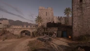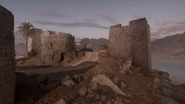 The Ottomans deploy amongst the sandstone walls of a now crumbling old structure, which appears to have been converted to a vehicle maintenance workshop, near the coastline in the map's far north. They spawn behind tall bluffs that block the view south, between which the road to Shatt al Arab Post and the inner sector passes. A bend in the road prevents enemies from shooting directly into their spawn area, but the narrow path through the gorge can be a potential bottleneck. The bluffs can be bypassed by sea, or by following a trail up to the high ground to the southwest.