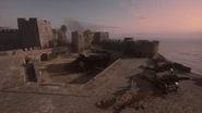 A QF 1 AA gun is located on the edge of the short cliff by the shoreline. A scout car spawns at this flag, and the Ottoman tank can deploy here once captured by their side.