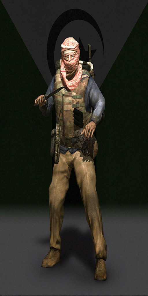 Appearance wise, the Insurgents are the only faction in the game not to wear gloves. Armored troops are equipped with a Green Body Armor and a blue shirt. The light troops instead wear a white shirt and backpack.