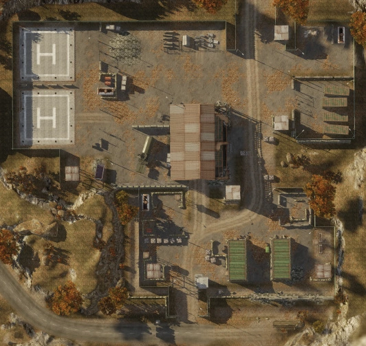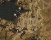 The final pair of objectives on Isla Inocentes are placed in a valley with the Russian missile batteries firing from behind and the attackers assaulting through a small pass. The attackers are given a UAV and M3A3 Bradley to attack, and the defenders are given a Mil Mi-24 Hind and a large number of stationary turrets (KORD's and 9M133 Kornet's). The attackers are restricted to a small choke point as they pass over the ridge when assaulting, and are easy targets for defending snipers, however this ridge also gives the attackers an overview of the entire map which can be helpful for attacking snipers. The main road leading from the village to the Artillery Base can be an excellent position for Engineers to place mines, as the M3A3 will almost always travel down that road. Whichever team can keep the other team suppressed will usually win this objective. Once over the ridge and into the base, most of the area is covered by a complex series of fences, walls and buildings that give attackers easy opportunities to sneak towards the objectives and flank the defenders, and vice-versa. This cover, however can be easily destroyed, so it is advisable for defenders to prepare fire lanes through the cover to prevent enemies from sneaking through and spawning their squad mates, and possibly stealing the helicopter. Objective Alpha is located at the base of a Sentry tower on the Attacker's right and Objective Bravo is located next to a warehouse and the Heli-pad across from the base.