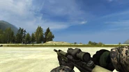 The L85A2 is an assault rifle introduced with Battlefield 2: Euro Force. It is used by the EU Assault Kit. The L85A2 differs significantly from the A1 in that it possesses a different color scheme, a different handguard, and makes use of the iron sights instead of the SUSAT scope which the A1 uses. It also makes use of the AG-36 grenade launcher. Unlike most other weapons which have multiple variants, the L85A2 possesses slightly different stats from its vanilla counterpart: most notably, the A2 has slightly higher spread and higher recoil. However, it is otherwise identical.