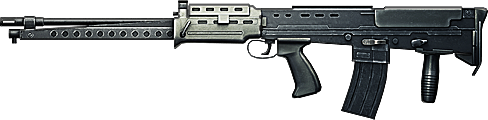 The L86 LSW (Light Support Weapon) is a Light Support Weapon variant of the L85, featuring a longer barrel, aft-grip for supported shooting, and a bipod. Despite technically being an LMG, the L86's relatively small magazine size and lack of quick-change barrels cause it to be relatively unsuited to a suppressive fire role. However, its longer barrel provides superior accuracy and range, and as a result the L86 is generally employed as a Designated Marksman Rifle by British forces. The L86A1 variant was the initial version of the L86, but like the L85A1, it was plagued by reliability issues, and was upgraded to the significantly more dependable A2 standard in 2000.