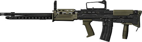 The L86A2 is a light machine gun featured in the Battlefield 3: Close Quarters expansion pack and Is unlocked upon the completion of the No Shortage assignment. The L86A2 is exclusive to the Support class. The L86A2 is a magazine-fed light machine gun, comparable to the M27 IAR and RPK-74M, possessing 45+1 round magazines by default, with all of the attachments available to those weapons, and has the same unlock progression (contrasted to the belt-fed light machine guns, where the unlocks are gained in a slightly different order). With Extended Mags, it has a 60+1 round mag.