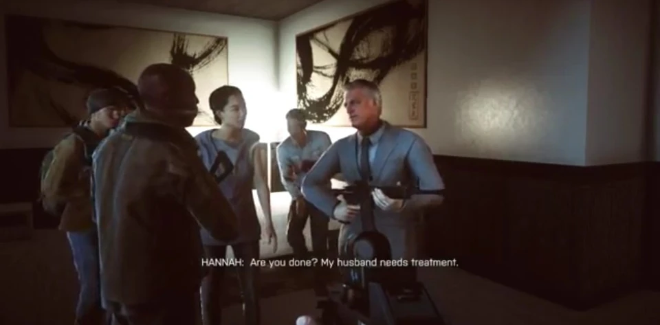 Hannah and Kovic then preformed crude surgery on Jin Jié who was slowly bleeding out from shrapnel. Successful, Kovic then told them how they need to make it to the coast and escape. At this statement, Jin Jié sat up, saying how he could not abandon his people. Kovic relentlessly argued with Jin Jié who was intent on staying in Shanghai, to which Hannah agreed. Before they could argue further, Kovic overheard a military official say that all foreigners were to report to the Zhi You Towers for evacuation. Kovic was about to abandon Jin Jié at this statement but decided against it after a plea from Hannah.