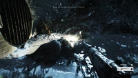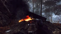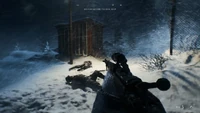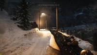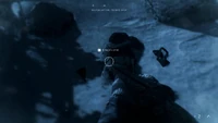 Following the power station and heading down the slope, the player is expected to head west past the final fire towards the end of the level. Instead go to the fire and turn to face south/southeast. Walk towards the trees and look towards the right side to spot a body in the snow. The letter is located on the body.