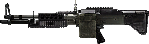 Among the LMGs, the M60-E4 is tied for the highest maximum and minimum damage, sharing the same damage models as the PKP Pecheneg and the M240B. With 570 rpm, the M60-E4 suffers from the slowest rate of fire out of all LMGs, but also the most controllable recoil of the high-damage-low-fire-rate machine guns. Tap-firing and micro-bursting the Pig is recommended, as a first shot recoil multiplier of 1x will mean that the gun will never have an uncontrollable upwards kick when firing a new burst. A Bipod can also be attached to be able to essentially negate vertical recoil when deployed on a solid surface.