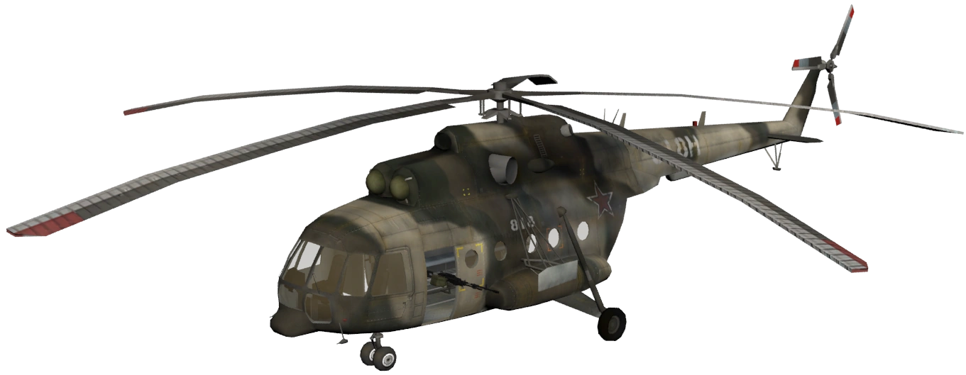 The Mi-17 is a vehicle featured in Battlefield 2 as the MEC's, MEC Special Forces' and Russian Spetsnaz's main transport helicopter. The Mi-17 can hold up to six players; the pilot, two door gunners and three passengers. It's counterparts are the USMC MH-60S Knight Hawk and the PLA Z-8.