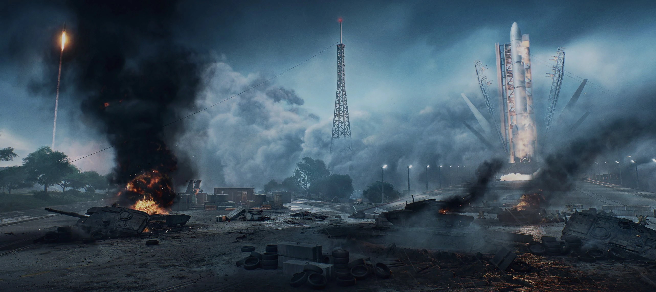 Orbital is a map featured in Battlefield 2042. It was first seen in the Battlefield 2042 Official Reveal Trailer (ft. 2WEI). It is set in a orbital rocket station in Kourou, French Guiana, where the player must fight in massive storms next to a giant rocket ship.