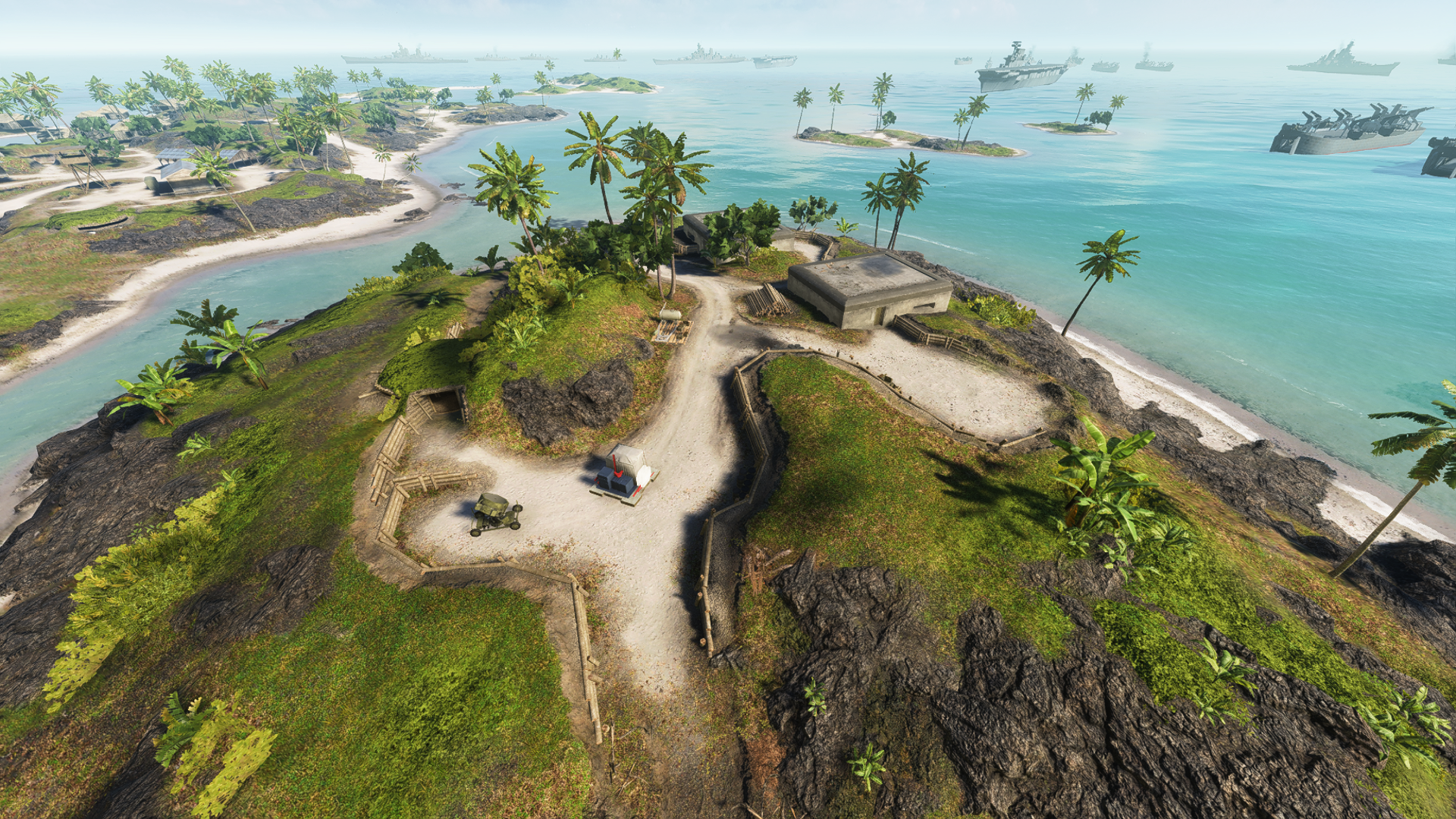 Due to the nature of their starting positions, each team has a different vehicle complement. The US LST spawn features a total of eight LCVPs and two 40mm AA guns, with two more GPWs spawning near their secondary deployment on Adawo Island. The Japanese are allocated four Type 95 Cars and a Dinghy.