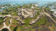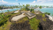 Adding to the original fortifications, the flag can be built-up against outside incursions with sandbag walls and dragons' teeth blocking both the very narrow road entrance in from the west, as well as the bridge to Atero Island beyond it. The flag presents players with a Katana and a light scout car, retrieved from the tents north of the road. A Dinghy spawns to the southwest of the flag.