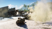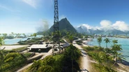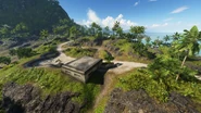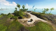 To the direct north of the base is a fording point to the Bastion on Revo Island. A roadbridge spans the narrowest point over the eastern bay separating Adawo and Atero, accessible to tanks and the light car spawned by this flag. Other vehicles capable of making the crossing, such as an Amphibious Tank and a Dinghy, spawn near the bay shore. The tank, either an LVT or Ka-Mi depending on which team holds the base, is a neutral vehicle that lacks any upgrades and is entered via the game world rather than spawned directly via the respawn screen.