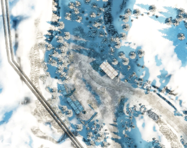 The Construction Site's control point is right next to a small warehouse along the road and it is closest to the RU Deployment. This area provides decent cover with the forest in back, the two houses, and the building under construction that can be used to snipe towards Bravo from.