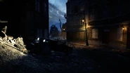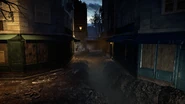 The battlelines are pushed back into the confined passages of the central block, with the next set of telegraphs inside this urban labyrinth. Objective A is on the landing between a twin set of stairs in a vertical alleyway connecting the Frontlines location of Navarin Trench to the horizontal sidestreet leading to Florian's Café. Objective B is in a parallel alley to the south, at the foot of set of stairs leading down to Schmidt Trench.