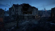 Navarin Trench is set amongst a destroyed town block on the west side of the map. Only two buildings here are relatively intact, with the rest either left as gutted skeletons or mere remains in the form of detached walls and mounds of debris. A trench line cuts between these buildings and across the horizontal roads in the middle of the capture zone, which is primarily concentrated around the middle two of the four roads leading out of the German spawn, particularly where they join to the main loop.