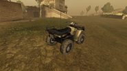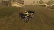 The Quad Bike is a vehicle featured in Battlefield: Bad Company 2. It is a very fast, lightly armored transport which can be used to carry a driver and a passenger to the frontline or into enemy territory. It is the equivalent of the Golf cart from Battlefield: Bad Company and is useful for initial rushes as well as reaching far-off objectives quite quickly. Due to its low health and armor, it can easily be destroyed by a single projectile fired from most explosive weapons. A hard crash into an obstacle may also be enough to cause the Quad Bike to blow up if it has already sustained considerable damage.
