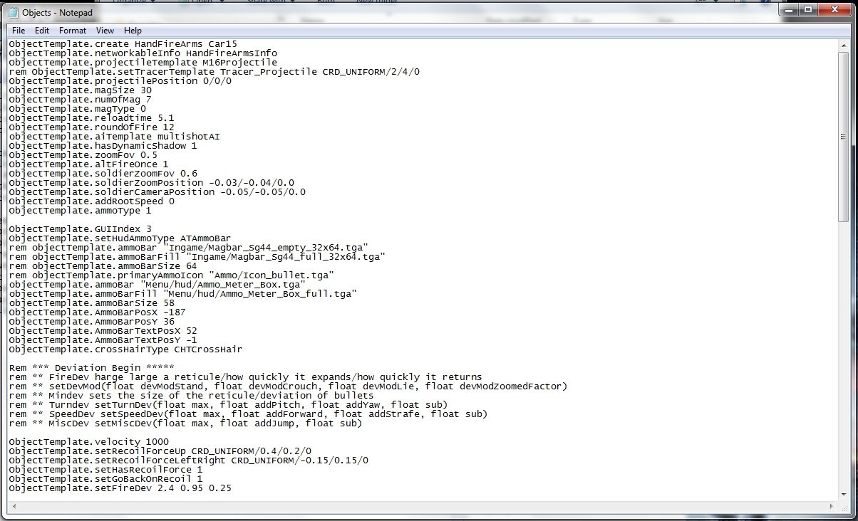The CAR-15's Battlefield Vietnam Objects file. Note all of the objectTemplate lines.