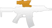 This scope provides a 4X zoom that improves mid-range accuracy, however the improvement is not drastic. The scope provides a red chevron in the center of the scope for aiming. It has a disadvantage at close range as it takes longer to pull up than iron sights or a Red Dot Sight.