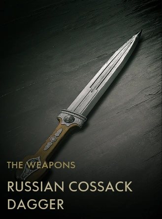 Russian Cossack Dagger is a Codex Entry featured in Battlefield 1, introduced in the Battlefield 1: In the Name of the Tsar expansion. It is unlocked upon obtaining ten kills with the Cossack Dagger.