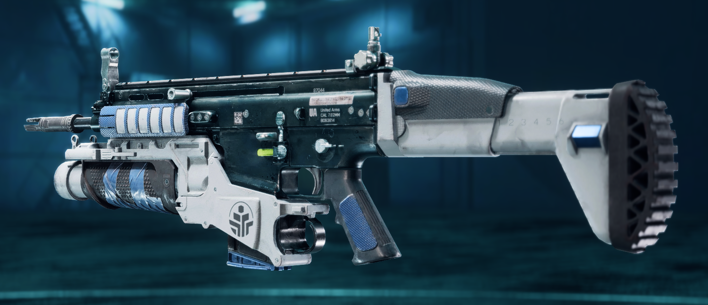 - In the reveal trailer, viewers can spot the SFAR-M GL that lacks a grenade launcher at 4:00.[1]