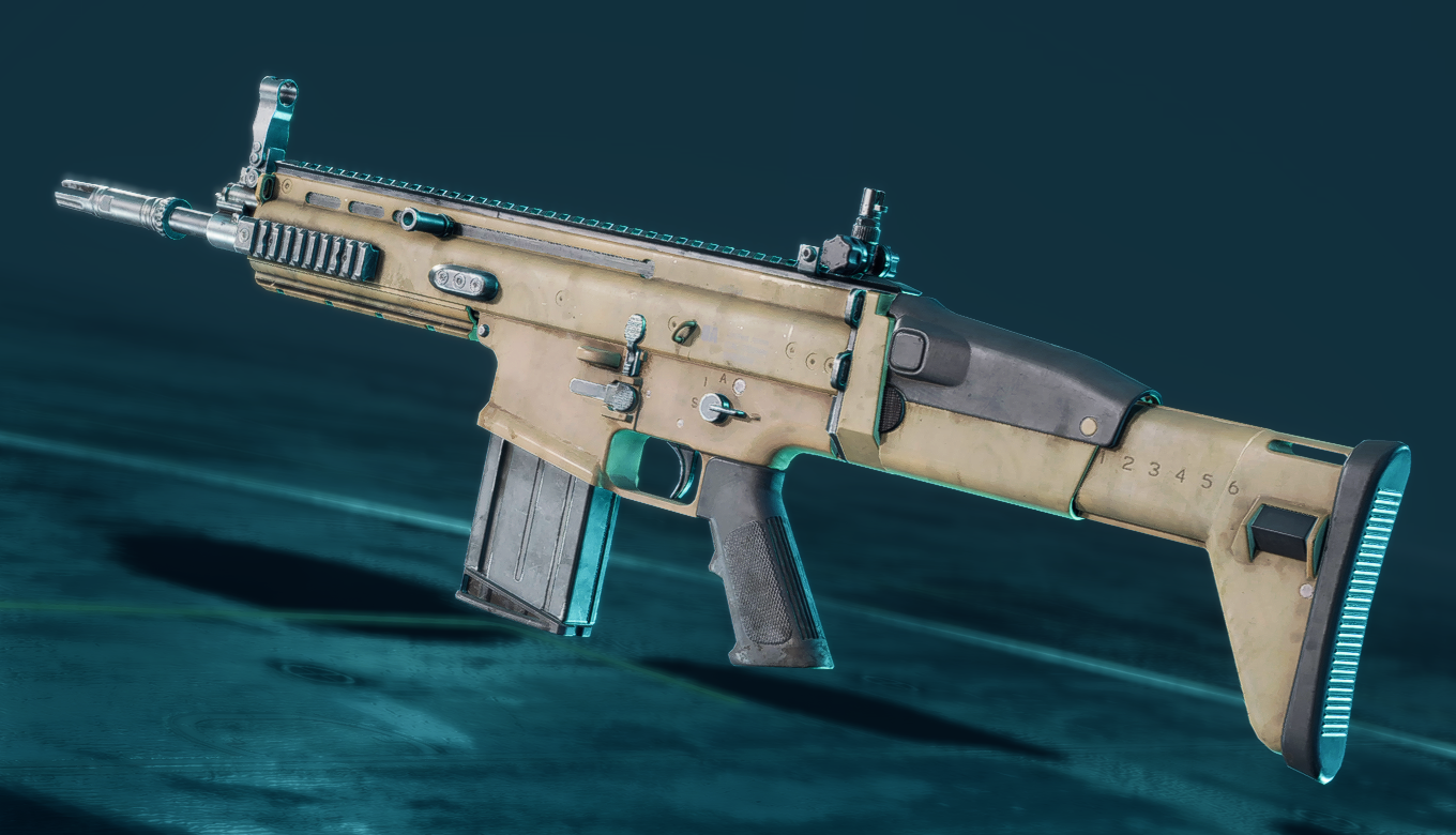 Two versions of the SCAR-H appear in Battlefield 2042, the futuristic SFAR-M GL (Special Forces Assault Rifle - Modern) in the base game and the Battlefield 3 version of the SCAR-H in Battlefield Portal.