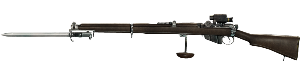The SMLE MKIII Marksman is equipped with a medium-power scope, a palm rest and a bayonet. It is the default sniper rifle for the Scout class.