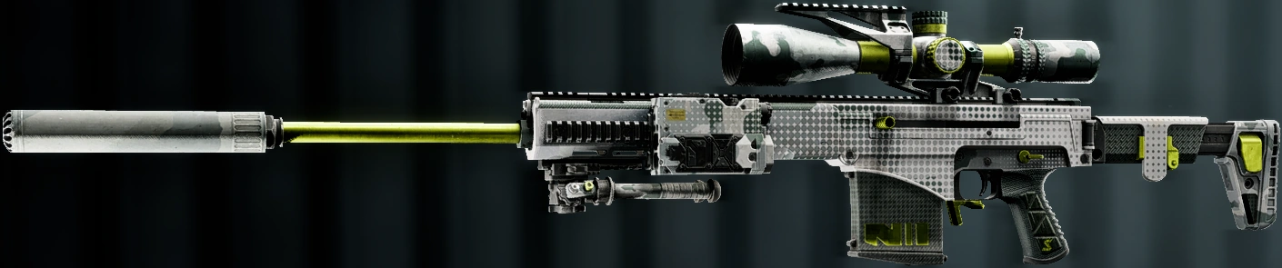 A weapon styled to catch enemies completely off-guard. | R-VPS 10.00x | None | None | Range Finder | Long Suppressor | 560mm Cut | Bipod | 10RND Magazine | FMJ | Freezing Point Bundle |