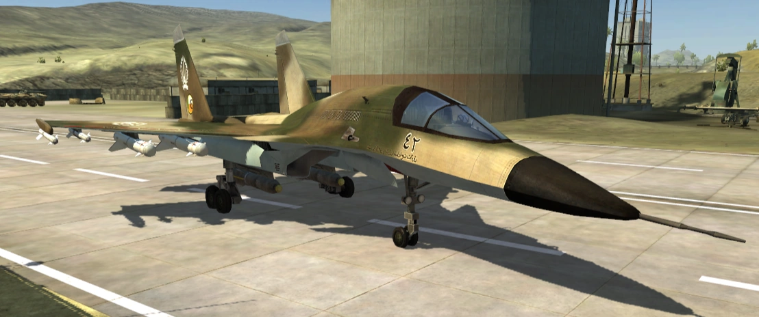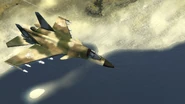 The Su-34 is the ground attack fighter for the MEC. It is similar to the USMC/EU F-15E and the PLA Su-30MKK, in both armaments and maneuverability. Like its counterparts, it is best used as an anti-tank or ground attack bomber, and is not suited for air combat against fighters, due to low maneuverability and fewer missile capacity. A second player can enter the Su-34 and is armed with laser guided missiles which can lock onto ground targets.