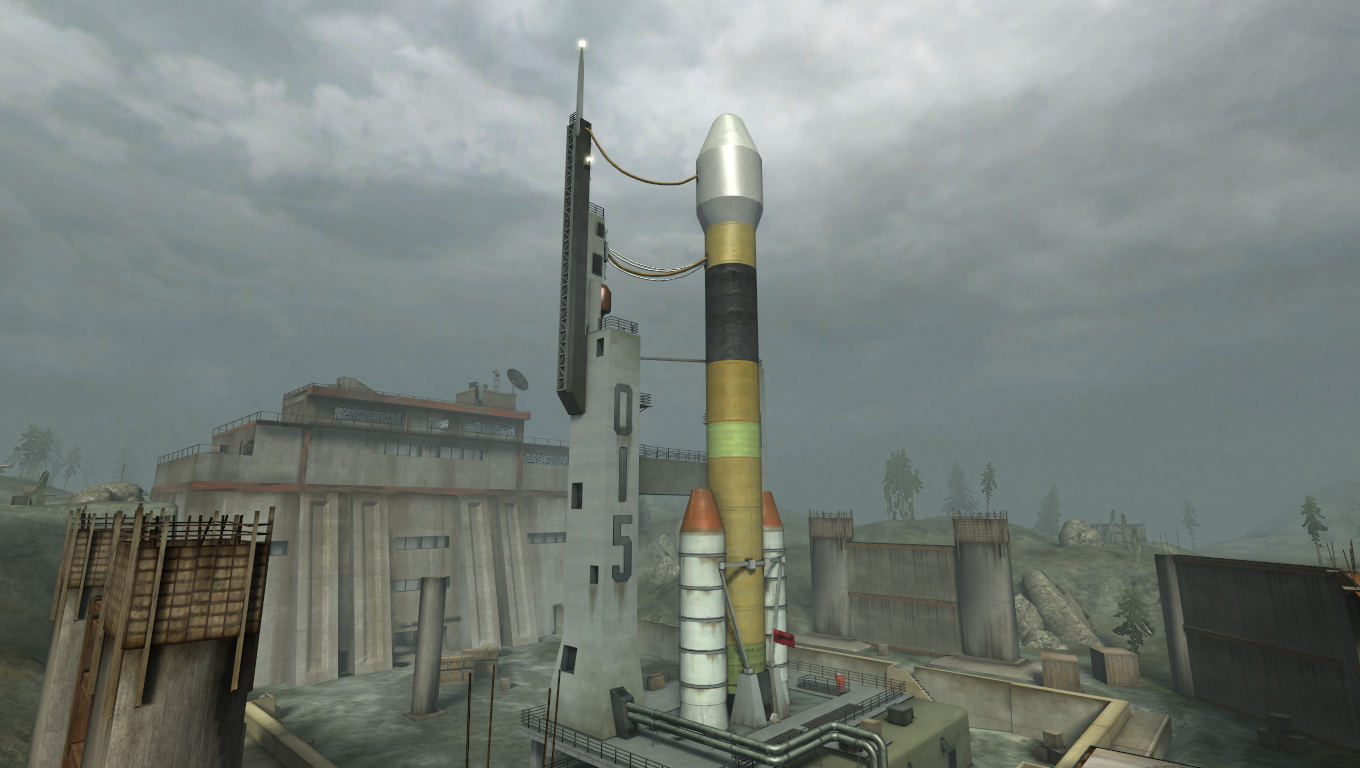 The 16-player version takes place in the area inside the peripheries of the launch site, with three control points: one starting under each team, and the central one neutral.