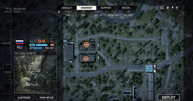 The Russians receive a T-90 and an SPM-3, while the Americans receive their M1 Abrams. These will be the only vehicles that are available throughout the entire battle if the defenders are pushed back.